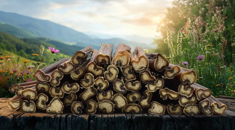 A hard, savoury and ultra-tasty long lasting dog chew. Beef pizzles, also known as bully sticks or bull pizzles, are a firm favorite with dogs around the world and are appreciated by dog owners due to their long lasting durability and being the natural choice for owners looking for a 100% natural alternative to the highly processed artificial toothbrushes and other similar products commonly sold in pet shops.